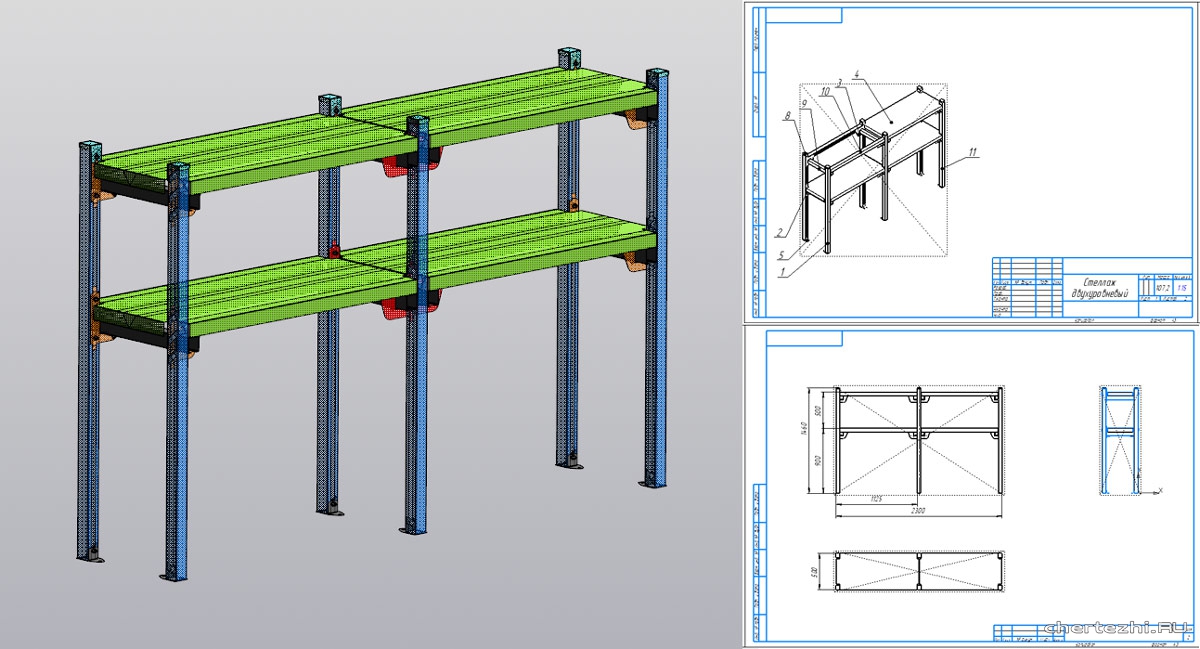 Стеллаж для хранения металлических изделий, с подвижными, регулируемыми полками / Состав: 3D версия проекта, а так-же чертежи для изготовления посредством гибки металла на листогибе + Спецификация