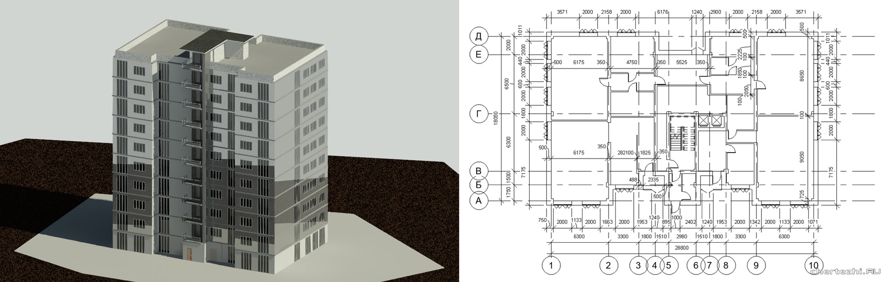 СПбГАСУ Кафедра Дизайна Архитектурной среды / Архитектурно-строительные конструкции / Жилой многоэтажный дом индустриального типа / Состав: 3д модель + 2 листа чертежи