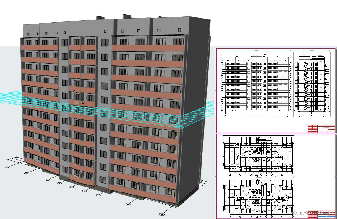строительных материалов, текстуры, цветовых решений, освещения. 3d модель многоэтажного дома позволяет разработать конструкторскую и технологическую документацию. Объемное моделирование помогает выполнить расчеты смет выполняемых работ и расхода строительных материалов. Программы компьютерного проектирования в 3D импортируют необходимые чертежи, что ускоряет разработку проекта. Программы пространственного моделирования дают возможность импортировать чертежи этажей и дублировать их, чтобы использовать для многоэтажных зданий.