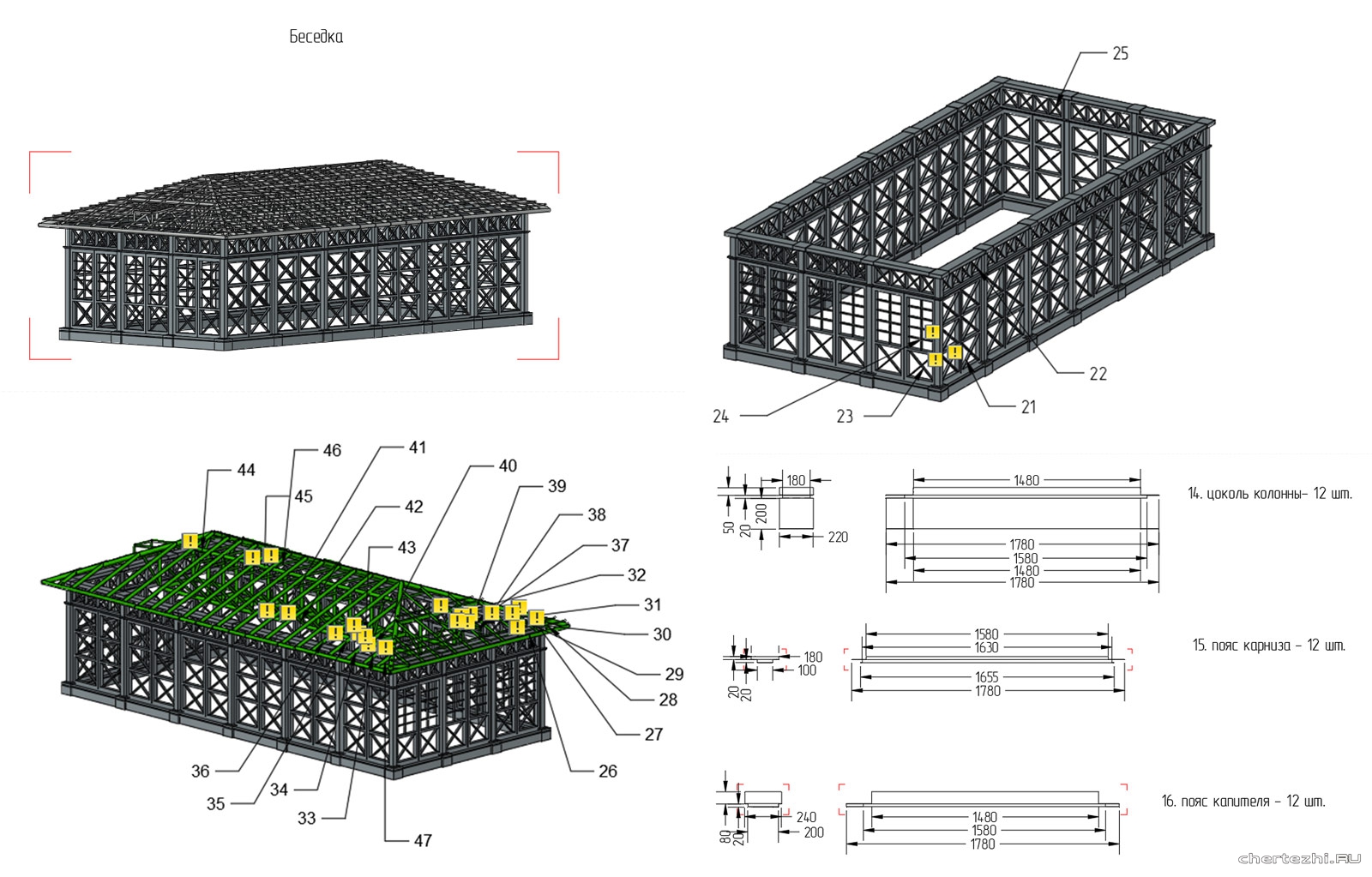 Строительные конструкции, которые защищают от непогоды, и служат для отдыха и приема гостей, называются беседками. Модели беседок используются для:
