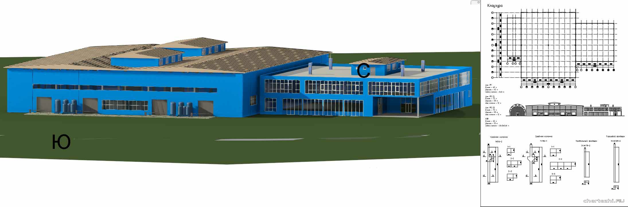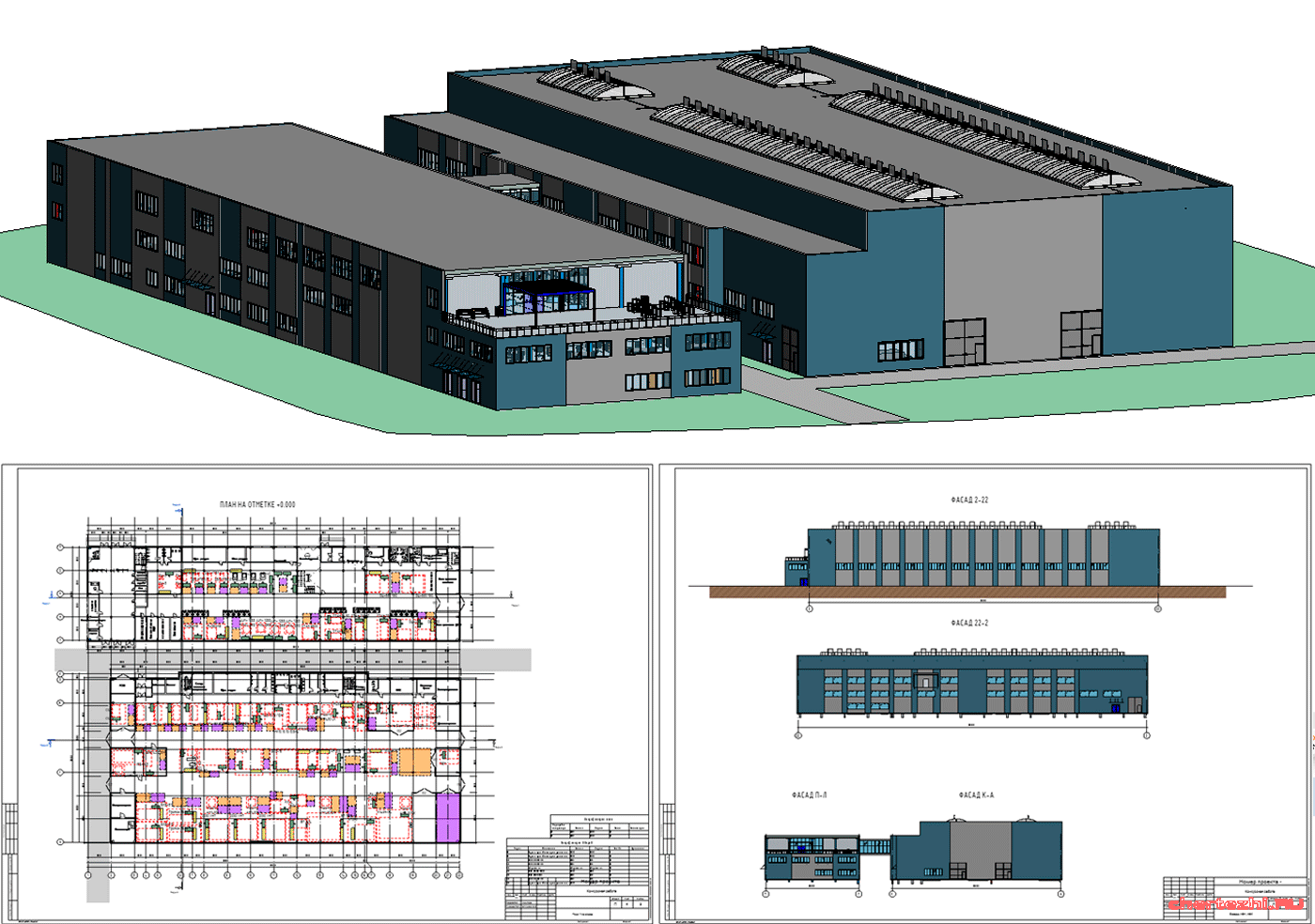 НГАСУ Сибстрин / кафедра АПЗС / Малое промышленное здание с нестандартной архитектурой. СТО расположено на 1 этаже в нижней половине планировки, парковка для автомобилей располагается на 1 этаже в верхней половине планировки, а также занимает все 2, 3, 4 и 5 этажи. Парковка имеет 2 въезда с северной и южной стороны непосредственно с улицы, СТО – с западной стороны. Высота здания составляет 25,300 м / Состав: файл модели в формате .rvt + экспозиция проекта в формате .pdf (Состав экспозиции: ситуационный план (1:2000), генеральный план участка (1:1000), экспликация к ГП, ТЭП, планы этажей (1:400), экспликация помещений, фасады в осях 1-12 и А-Л (1:200), два разреза (1:200), узлы (1:20).) + ПЗ