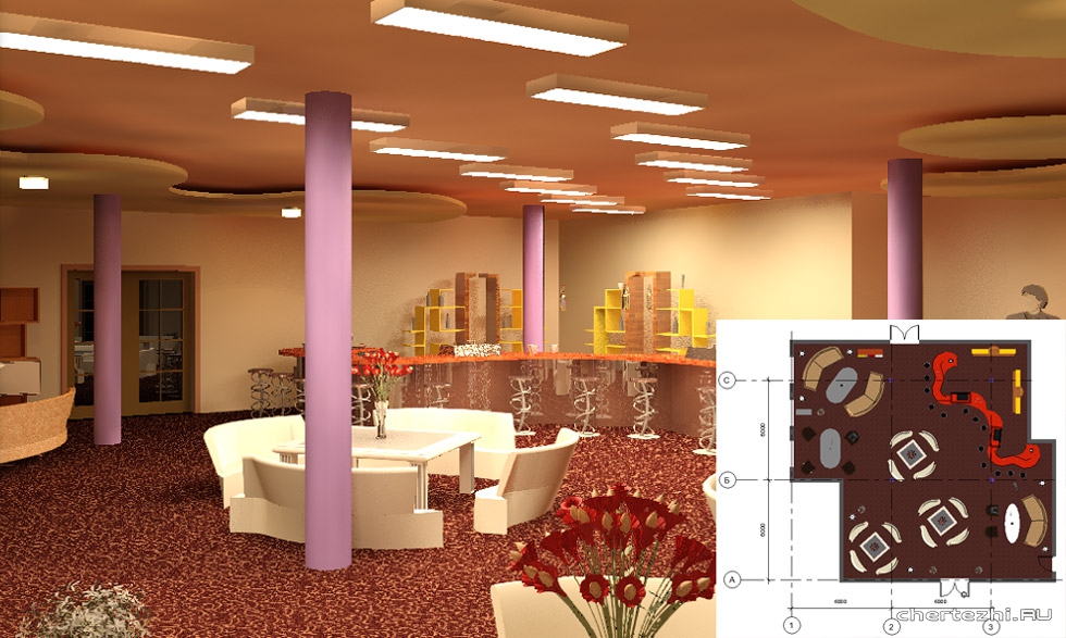 Курсовий проект. 3D-модель + креслення (план примiщення, план примiщення з меблями, план стелі, план підлоги). Об`єкт розробки дизайнерського проекту-коридор другого поверху Вищого професійного училища №1, якій знаходиться за адресой м.Рівне. Має складну геометричну форму, з розмірами в осях 1-4-29,05м; А-В-5,79 м. Освітлюється завдяки наявності 6 великих віконних прорізів. Площа приміщення 123,96 м2. Це громадська будівля навчального приміщення. Висота приміщення 2,85 м. Відмитка підлоги +3.50 м, стелі +6,35 м. Дане приміщення служить для сполучення між аудиторіями та очікування студентами під час перерви.На поверсі знаходиться (6) аудиторій, в середньому на поверсі може перебувати одночасно загальна кількість людей в межах 180 осіб.При створенні дизайн- рішення даного примміщення враховувалось навантаження та стираємість поверхні матеріалів для підлоги та стін.