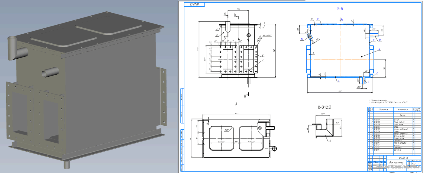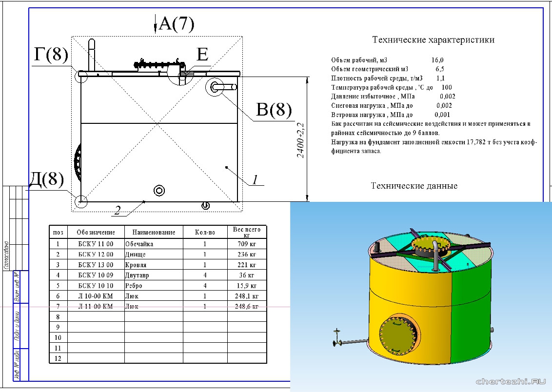 Колледж / Специальность "Сварочное производство" / Состав: 3Д сборка + детали (днище, крышка, лапа, накладка, обечайка, патрубок, подкладное кольцо, полоса, ребро, рым, соединительное кольцо, фланец) + задание