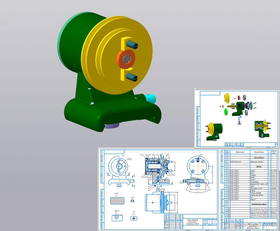 ВГТУ / Кафедра: Технология и оборудование машиностроительного производства. / Состав: 3D файлы: сборка и деталей сборки, разной сложности. + Чертежи 2Д (Сборка, Корпус, Диск, Эксцентрик) + Спецификация