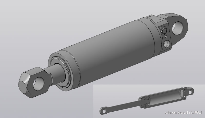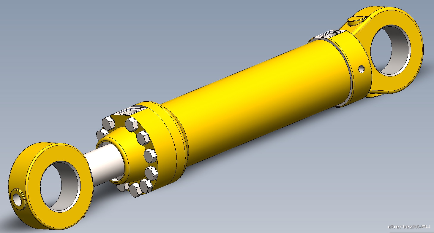 ГУВПО БРУ / Гидроцилиндр двухстороннего действия с одинарным штоком, Диаметр штока 50 мм диаметр поршня 80 мм ход штока 400 мм. / 3D-модель гидроцилиндра + 9 3D-моделей деталей.