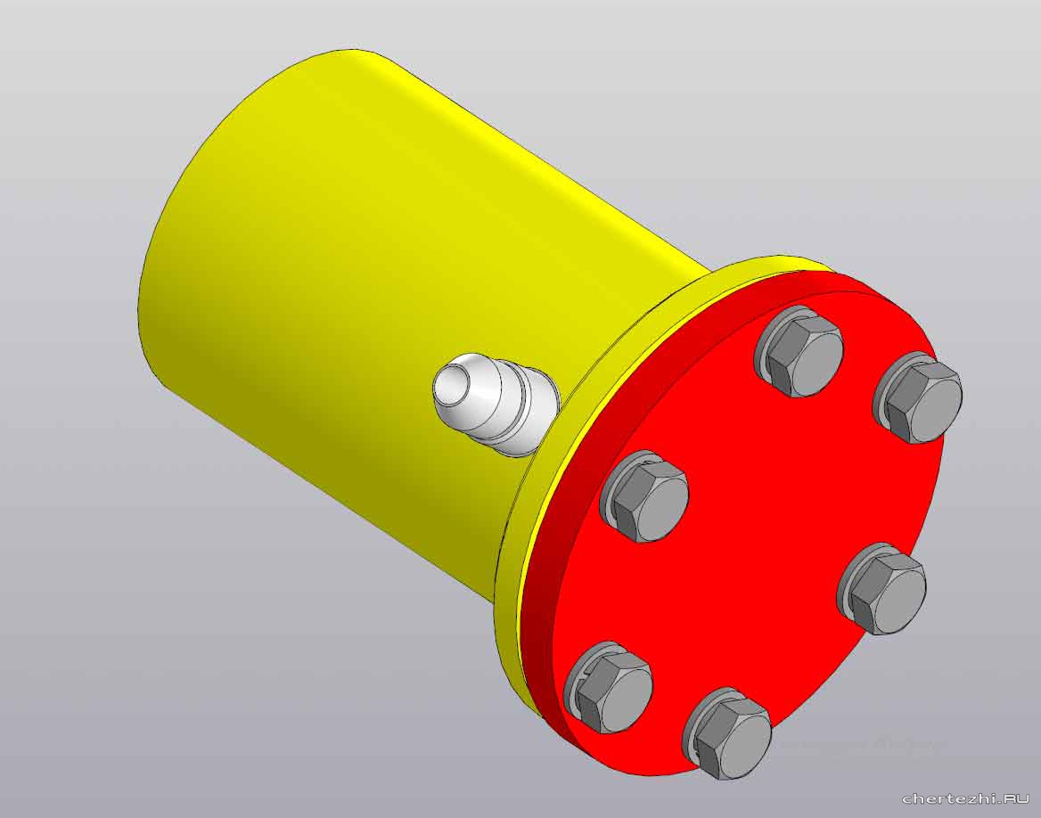Энергоаккумулятор для ГПА-16. Гидроаккумулятор мембранный, сварной, неразборный. Предназначен для гашения пульсаций или выравнивания объема в гидравлических системах, при изменении давления и температуры. Максимальное давление 21МПа, Рабочая среда - гидравлическая жидкость, объем - 16л, Вид - поршневой. Материал корпуса - сталь. Группа (серия) ПГА - APX. Присоединительные штуцеры М14х1,5. / Состав: 3D-модели (сборка, втулка, кольцо, корпус, крышка, пружина, штуцер).